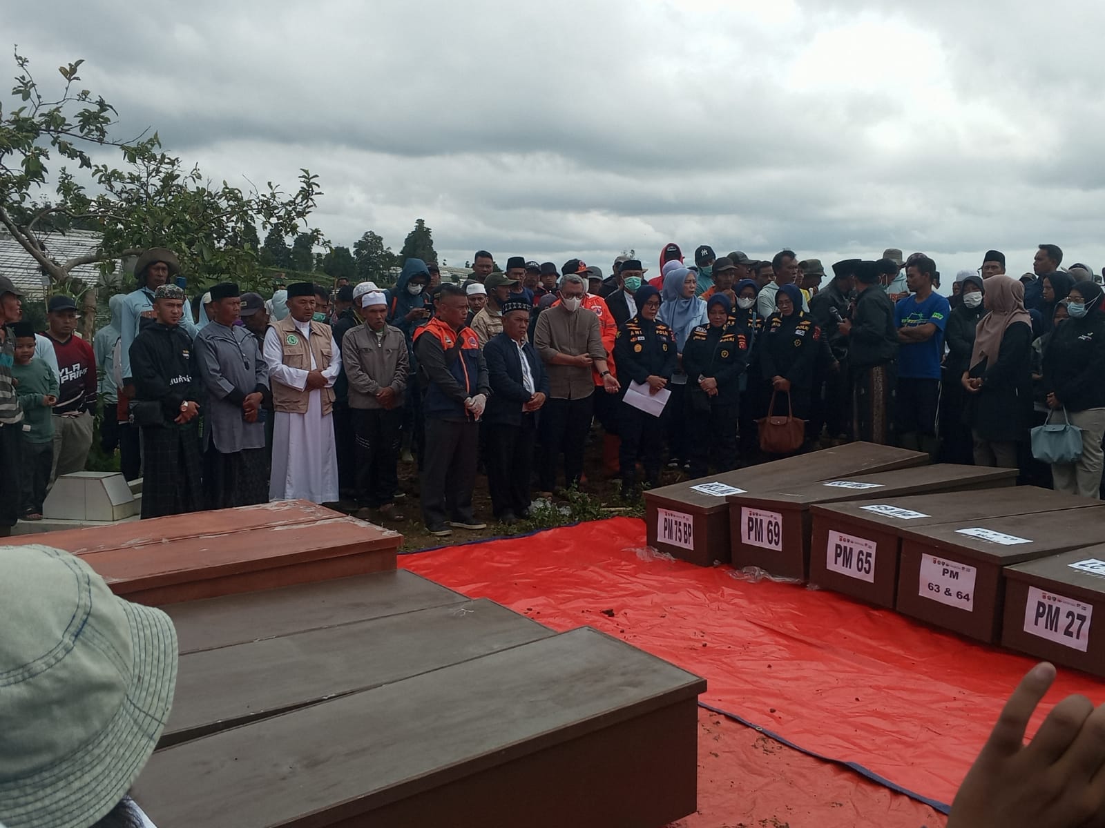 Jenazah di terima oleh Sekretaris Daerah (Sekda KBB) Ade Zakir dari RS Bhayangkara Sartika Asih langsung di bawa ke lokasi bencana, setelah Salat Jum’at baru di makamkan. Jum’at 27 Pebruari 2026.