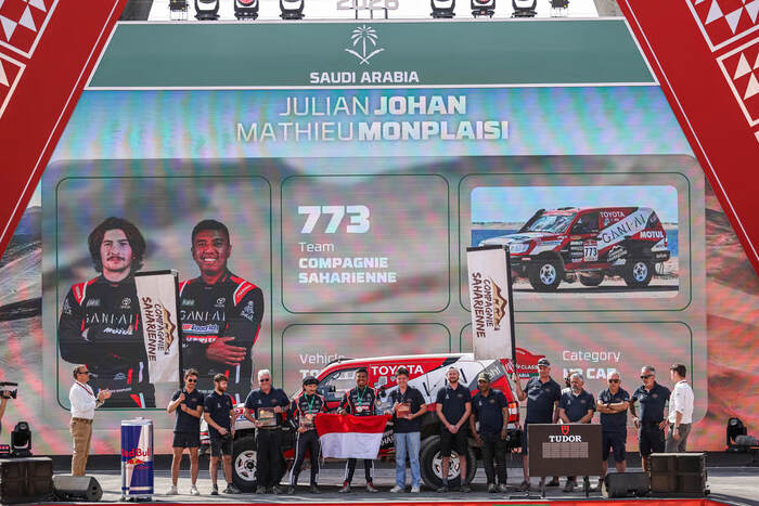 Di balik kemudi adalah Julian Johan, salah satu figur motorsport paling disegani di Indonesia, yang menaklukkan ribuan kilometer medan tanpa ampun. Bersama co-driver asal prancis, Mathieu Monplaisir, keduanya menghadapi kondisi ekstrem yang menuntut fokus penuh, komunikasi yang akurat, serta kemampuan beradaptasi saat lintasan berubah dari gurun terbuka ke etape teknis yang menantang. Dalam lingkungan seperti ini, setiap keputusan memiliki dampak yang besar, dan kesalahan sekecil apa pun bisa berakibat fatal.