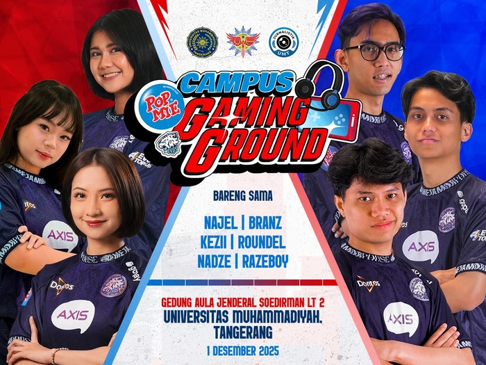 Tangerang, 1 Desember 2025 — EVOS dan Pop Mie menghadirkan rangkaian akhir Pop Mie Campus Gaming Ground 2025 di Universitas Muhammadiyah Tangerang (UMT). Kegiatan ini menandai momentum penting dalam upaya memperluas edukasi dan partisipasi mahasiswa terhadap industri esports yang terus berkembang di Indonesia.